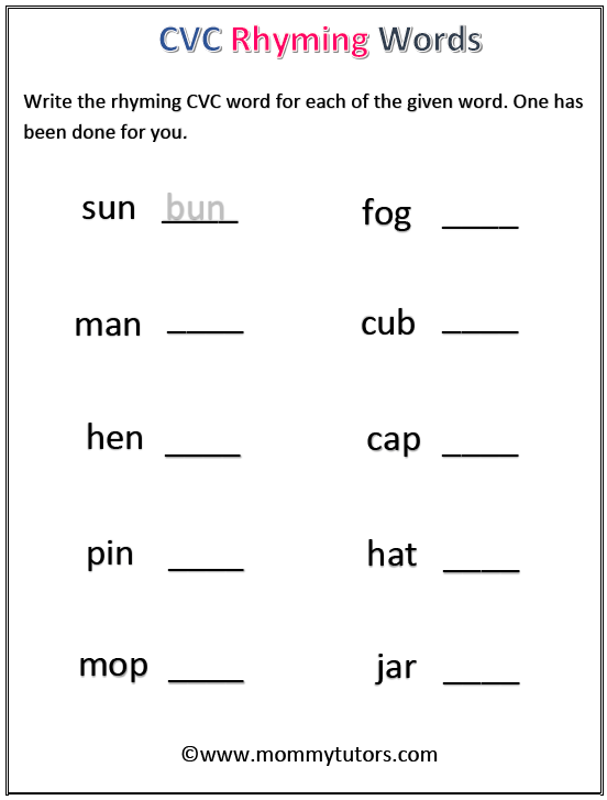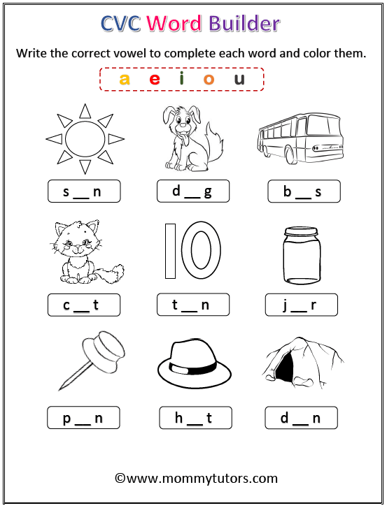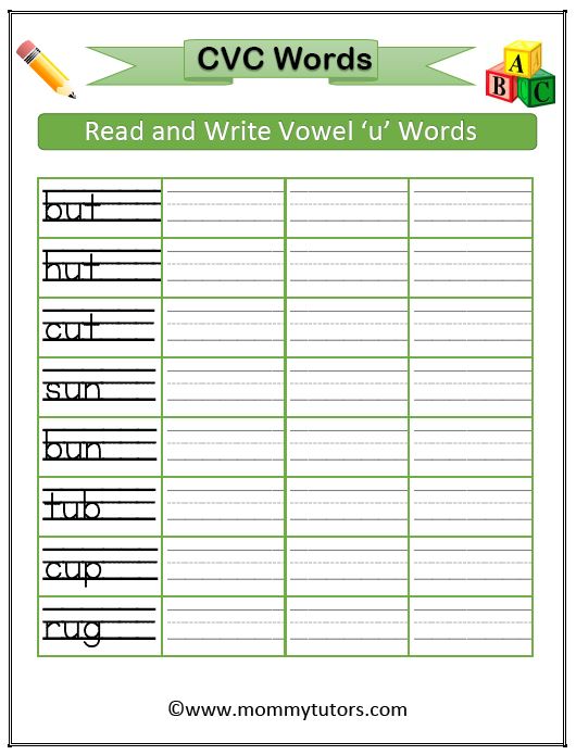 CVC words for kindergarten kids printable